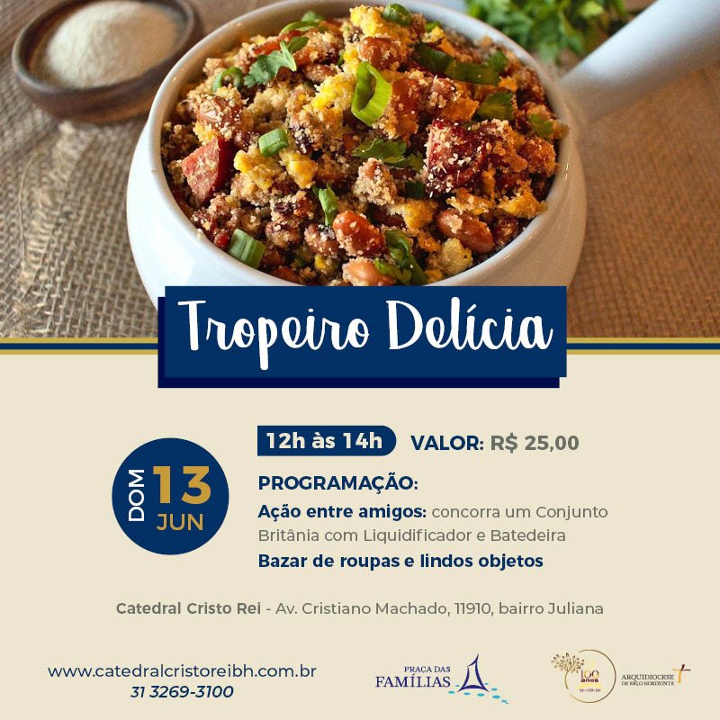 Com o valor de R$25,00 (vinte e cinco reais), o fiel poderá saborear um delicioso tropeiro completo e ajudar na construção da Catedral Cristo Rei.