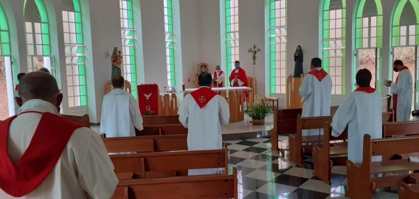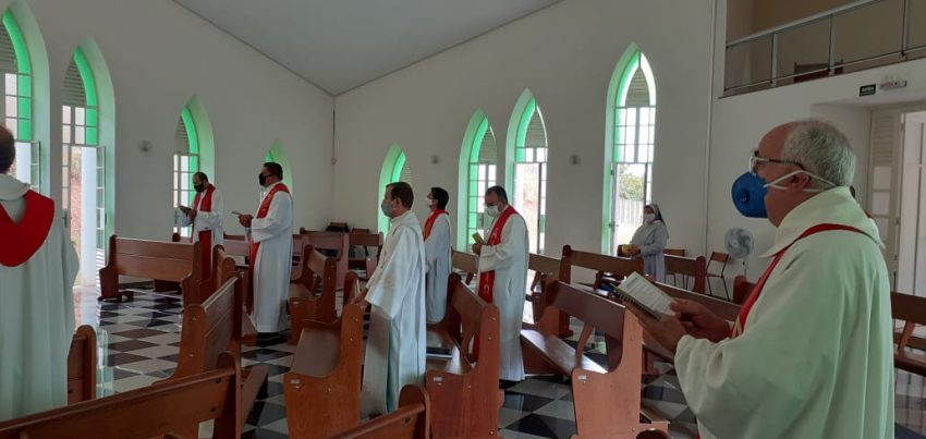 O bispo auxiliar da Arquidiocese de Belo Horizonte dom Júlio César, referencial da Região Episcopal Nossa Senhora da Conceição (Rensc), presidiu Manhã de Espiritualidade com os padres e diáconos das paróquias da Forania Nossa Senhora da Piedade, no dia 1º de junho, terça-feira. O encontro foi realizado no Recanto Coqueiro d’Água em Santa Luzia.