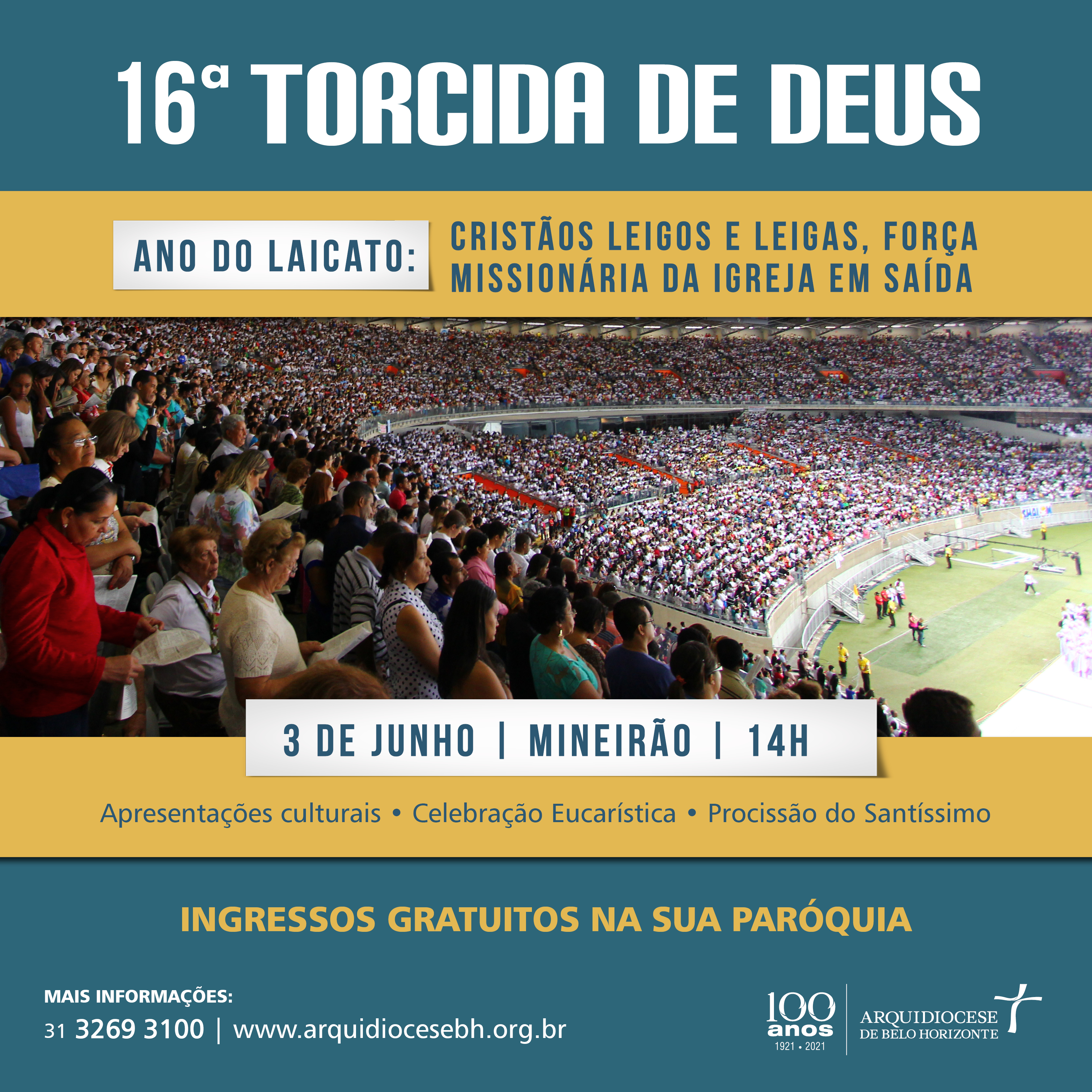 As comunidades de fé da Arquidiocese de Belo Horizonte estão convocadas para a tradicional Torcida de Deus, no dia 3 de junho (domingo), no Mineirão. Neste ano, o tema da Torcida de Deus é “Ano do Laicato: cristãos leigos e leigas, a força missionária da Igreja em saída”.