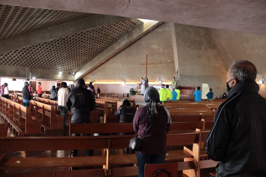 Os que participaram da peregrinação tiveram que se inscrever previamente para, assim, garantir o distanciamento social necessário à prevenção da COVID-19.