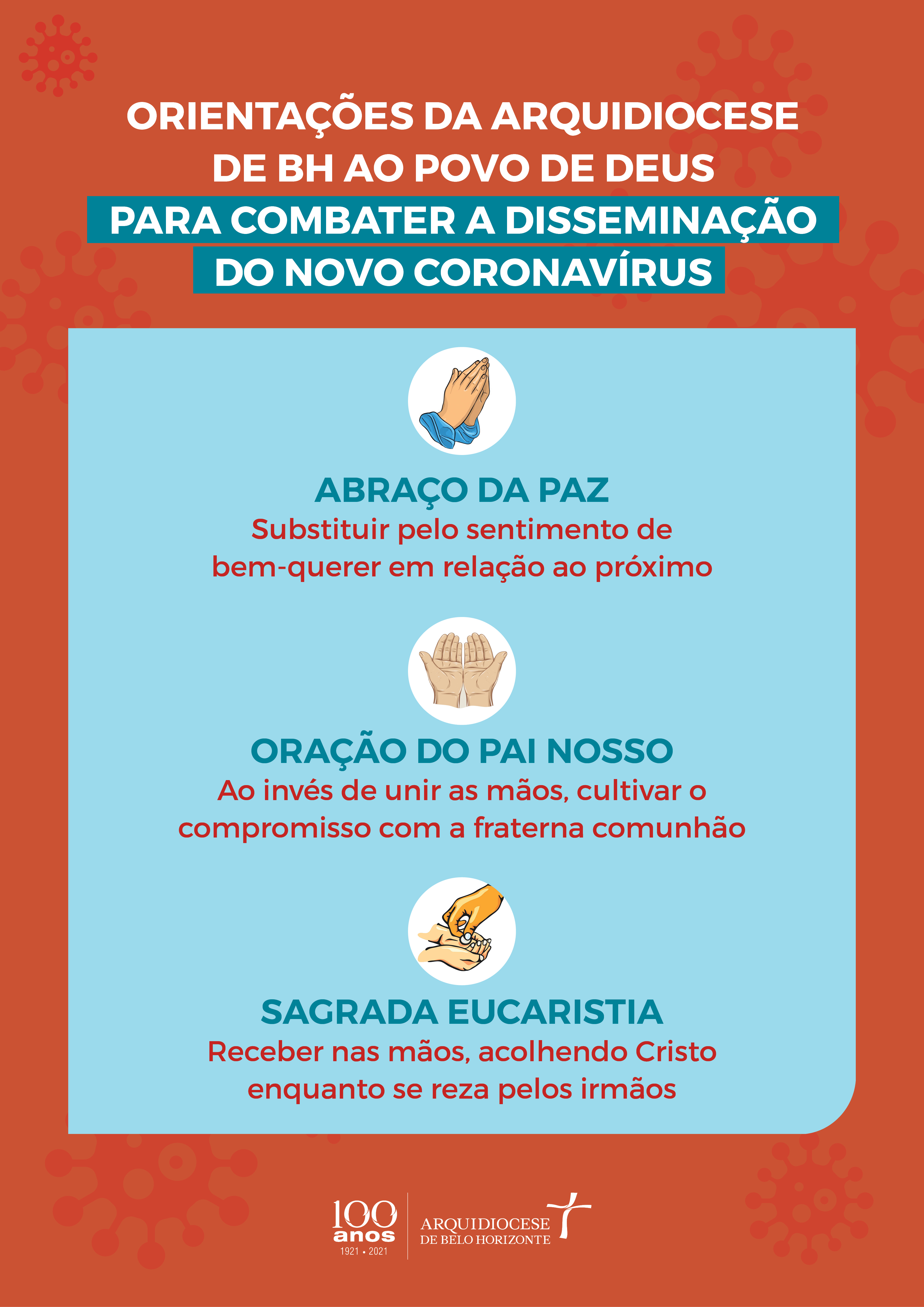 A Arquidiocese de Belo Horizonte, em comunhão com a Igreja em todo o mundo, está sempre comprometida com a defesa da vida, com o bem estar de cada pessoa. A vida é dom de Deus, precioso, e por isso mesmo deve ser preservada e promovida, em todas as suas etapas, da fecundação ao declínio, com a morte natural. Por isso mesmo, a Igreja une-se aos que hoje buscam combater a disseminação do coronavírus, uma ameaça à saúde, principalmente dos idosos e enfermos.