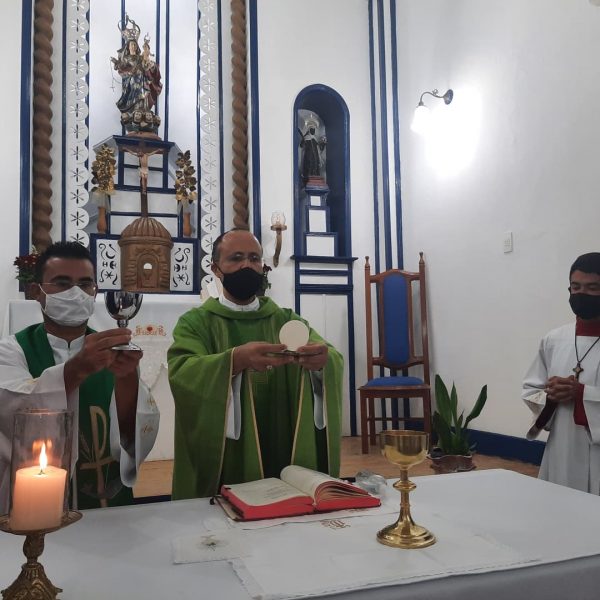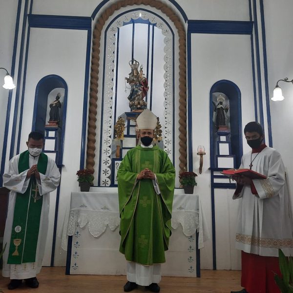 A imagem da Padroeira de Minas Gerais foi entronizada na Igreja Nossa Senhora do Rosário, que integra a Paróquia, durante Missa celebrada por dom Geovane Luís, com os membros do Conselho Pastoral Paroquial (CPP) e do Conselho Administrativo Paroquial (CAP).