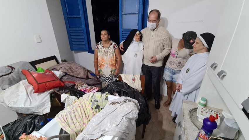 Dom Walmor rezou com as famílias e as religiosas, reafirmando a comunhão e a solidariedade da Igreja no amparo a todos. A solidariedade do Arcebispo fortaleceu as vítimas das enchentes que, agora, buscam reconstruir as suas vidas, contando com a ajuda de todos.