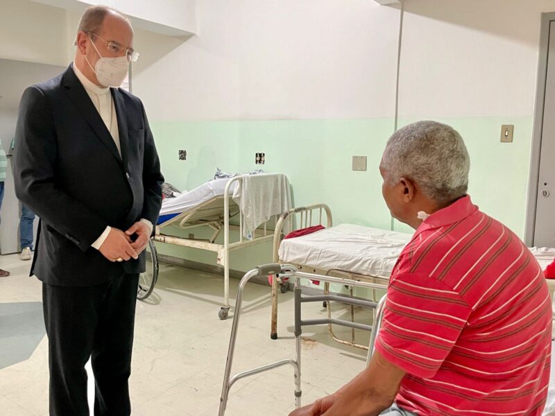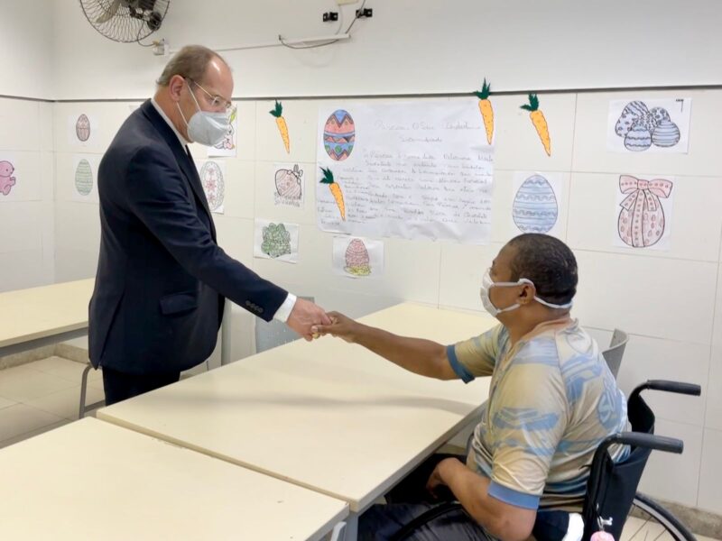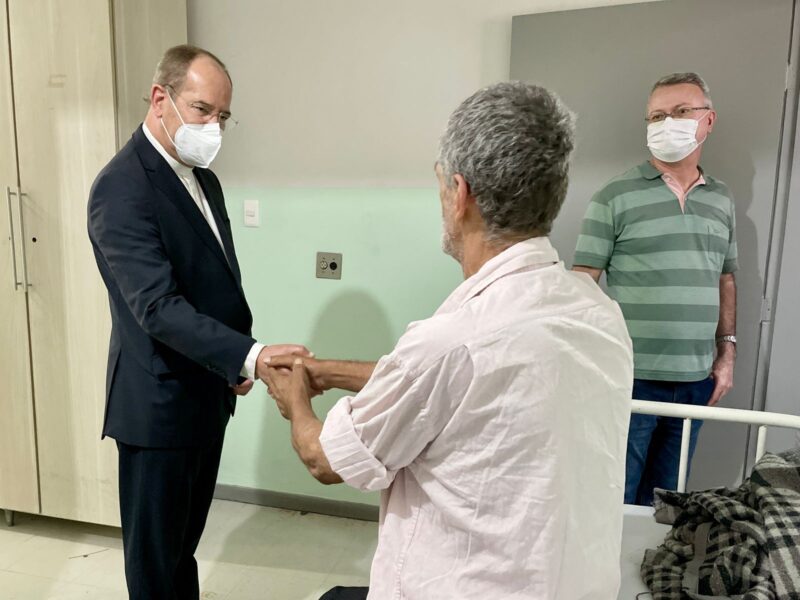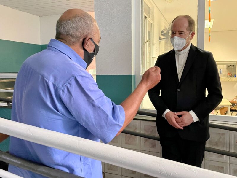 O arcebispo de Belo Horizonte, dom Walmor Oliveira de Azevedo, foi recebido com alegria pelos pacientes amparados pela Casa de Apoio à Saúde Nossa Senhora da Conceição, na tarde desta terça-feira, 12 de abril, no bairro Lagoinha. Mais que uma visita, a presença pastoral de dom Walmor representou mais esperança, consolo e conforto para os enfermos com quem conversou e rezou. Acompanhado do vigário episcopal do Vicariato Episcopal para Ação Social, Política e Ambiental (Veaspam), padre Júlio César Gonçalves Amaral, dom Walmor partilhou especiais momentos de comunhão e fraternidade com todos