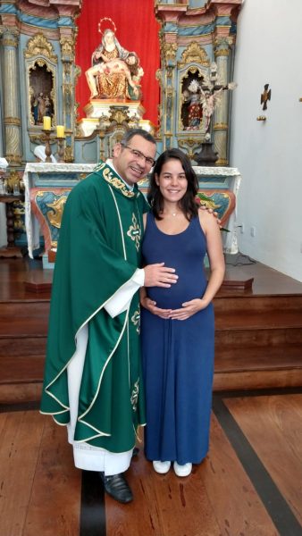 A fiel Thábata esteve presente no Santuário da Padroeira de Minas no dia 23 de maio, para pedir bençãos por sua gravidez.