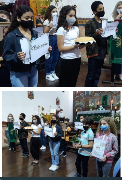 Os alunos do 5º ano e catequizandos do Instituto fizeram uma bonita apresentação alusiva ao Ano Jubilar Centenário durante Missa na comunidade de São Francisco, da Paróquia de Nossa Senhora do Rosário, em Sabará, nos dia 4 e 5 de setembro.