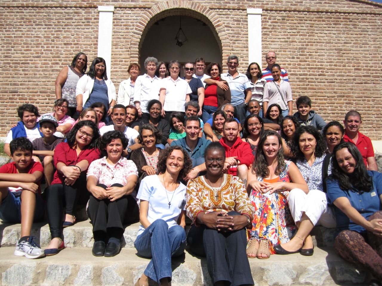 Priscila em encontro com os integrantes da Fraternidade Missionária Verbum Dei (foto tirada antes da pandemia da Covid-19)
