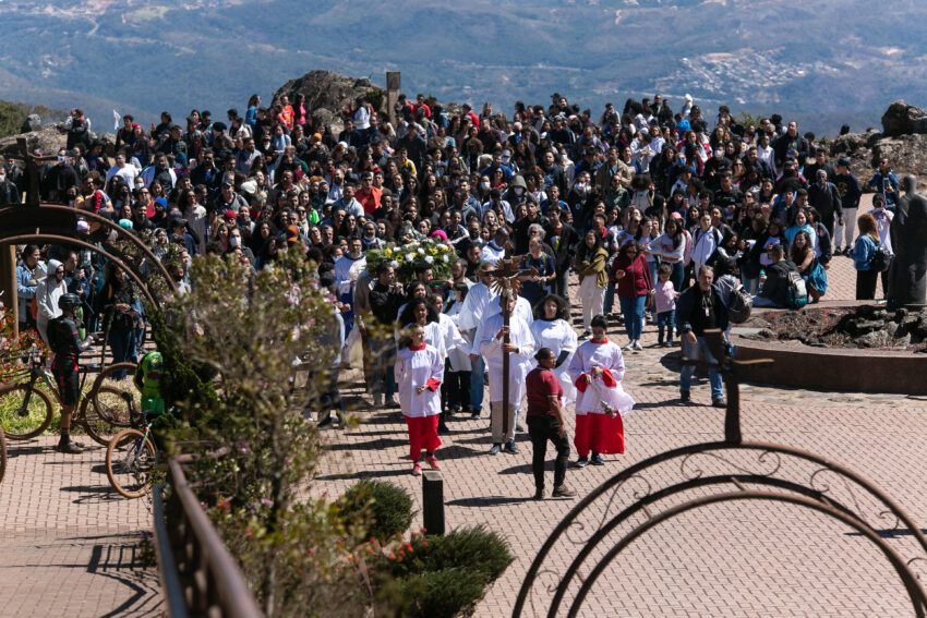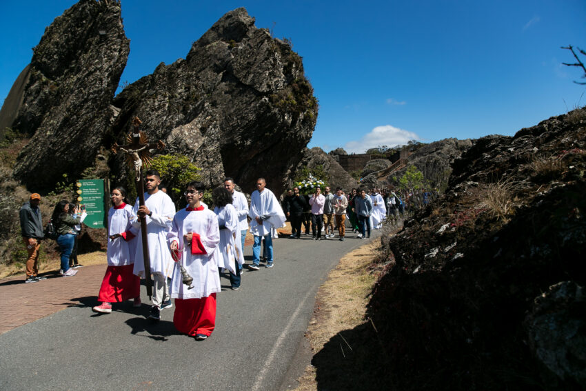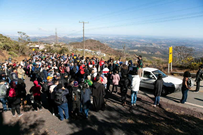 Há quase três décadas, o Santuário Basílica Nossa Senhora da Piedade – Padroeira de Minas Gerais acolhe jovens de diferentes lugares, em uma grande peregrinação realizada sempre no dia 15 de agosto – Festa da Assunção de Nossa Senhora. Neste ano, os jovens rezaram pela paz no Brasil, considerando os desafios deste ano eleitoral, a intolerância e preconceitos crescentes, além de tantas outras formas de violência que ameaçam a vida no país. Bem cedo, os grupos de jovens, vindos de diferentes lugares, começaram a chegar ao Santuário, reunindo-se na Estação da Piedade, na metade do percurso que leva ao ponto mais alto da Serra da Piedade, limite dos municípios de Caeté e Sabará, na Região Metropolitana de Belo Horizonte. Às oito horas, os mais de mil peregrinos iniciaram a Caminhada pela Paz, subindo a pé o trajeto de aproximadamente 2,5 km, guiados pelo pró-reitor do Santuário da Padroeira de Minas Gerais, padre Samuel Fidelis. O presbítero lembrou que a devoção a Nossa Senhora da Piedade no alto da Serra começou a partir do testemunho de fé de uma jovem. Conforme narra a tradição, há mais de 250 anos, no alto da Serra, essa jovem, muda de nascimento, passou a falar, após testemunhar a aparição de Nossa Senhora. Esse testemunho de fé inspirou o português Antônio da Silva Bracarena a investir todas as suas economias na construção de uma pequena igreja no ponto mais alto da Serra, hoje a menor basílica do mundo, Ermida da Padroeira de Minas Gerais, que acolhe a imagem de Nossa Senhora da Piedade, obra de arte de Aleijadinho.