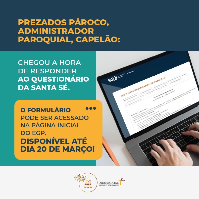 Os dados solicitados estão em conformidade com o questionário Estatístico Anual 2021 da Santa Sé e vão proporcionar uma maior e melhor dimensão sobre os desafios e frutos da missão evangelizadora da Arquidiocese de Belo Horizonte. Esses dados são enviados, anualmente, ao Vaticano.