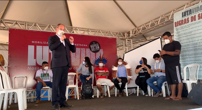 O bispo-auxiliar do Rio de Janeiro e secretário-geral da CNBB, dom Joel Portella Amado, disse ser tomado de alegria ao ver os indígenas reunidos, organizados de forma solidária, lutando por seus direitos. “A nossa visita aqui, até pequena no tempo, expressa 70 anos de solidariedade da Igreja no Brasil com a causa indígena e respeito aos povos originários. Estamos todos trabalhando por um Brasil diferente que respeite a democracia e a nossa constituição. Que vocês nunca esmoreçam em nos ensinar que vale a pena lutar por um mundo diferente “, disse.