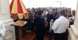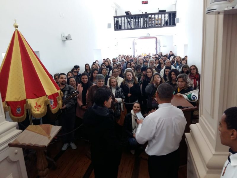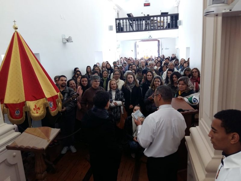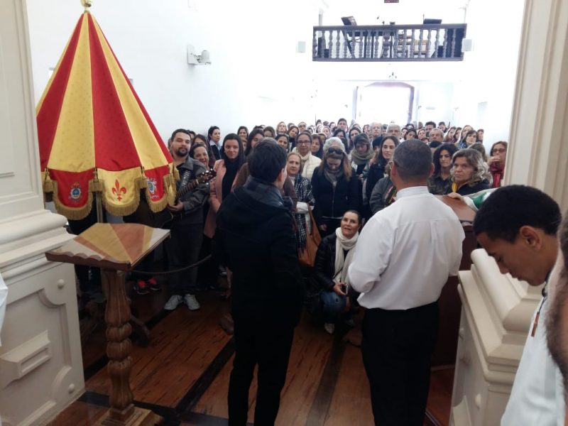 O grupo também contava com um padre e 9 fiéis vindos de Portugal, que prestaram sua homenagem à Padroeira de Minas Gerais.