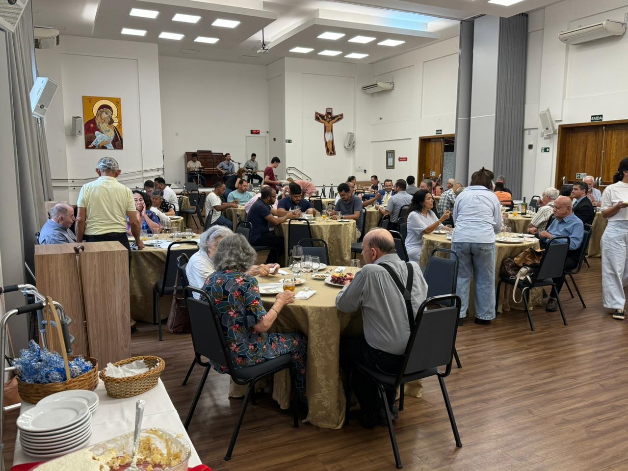 Após a celebração eucarística, os participantes se dirigiram ao Auditório Papa Francisco para o almoço natalino, que contou com a presença de amigos e familiares dos presbíteros, além dos seminaristas e dos padres que compõem a equipe formativa do Seminário Arquidiocesano Coração Eucarístico de Jesus. O encontro expressou a unidade entre as gerações do presbitério e o cuidado com aqueles que dedicaram sua vida ao serviço da Igreja.