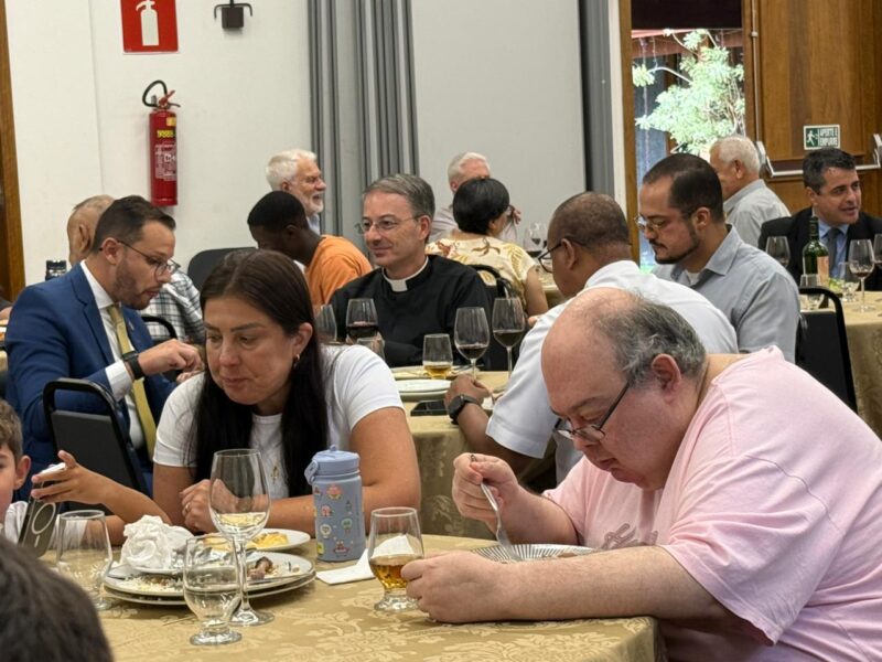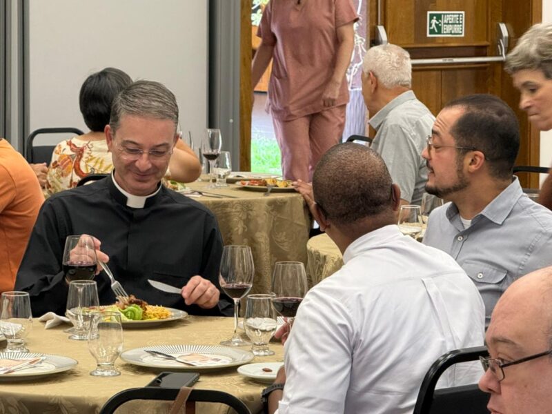 Após a celebração eucarística, os participantes se dirigiram ao Auditório Papa Francisco para o almoço natalino, que contou com a presença de amigos e familiares dos presbíteros, além dos seminaristas e dos padres que compõem a equipe formativa do Seminário Arquidiocesano Coração Eucarístico de Jesus. O encontro expressou a unidade entre as gerações do presbitério e o cuidado com aqueles que dedicaram sua vida ao serviço da Igreja.
