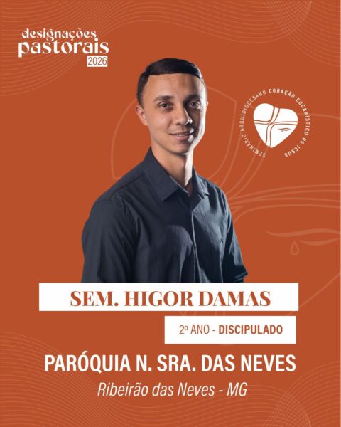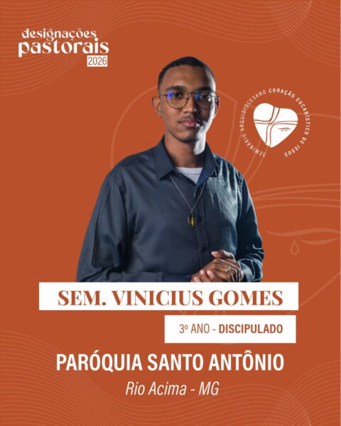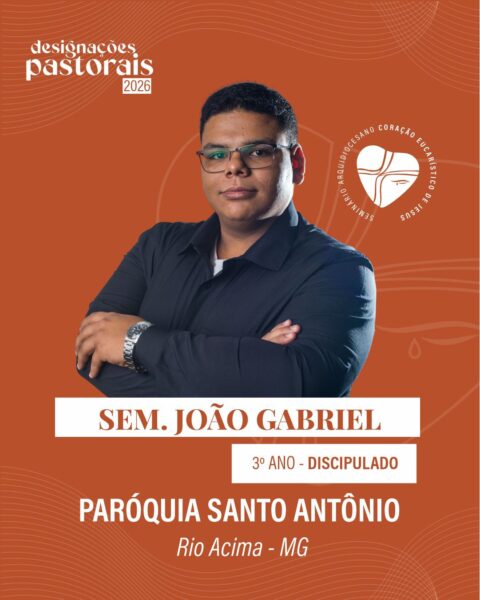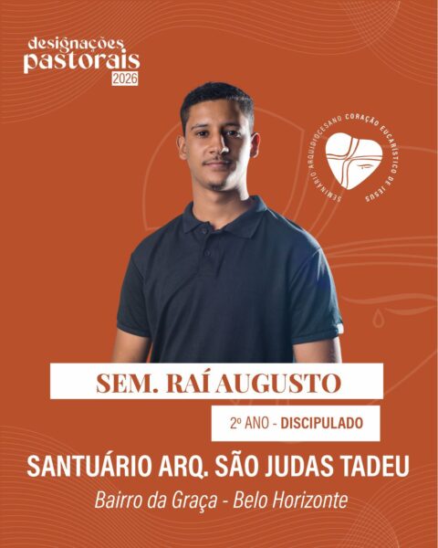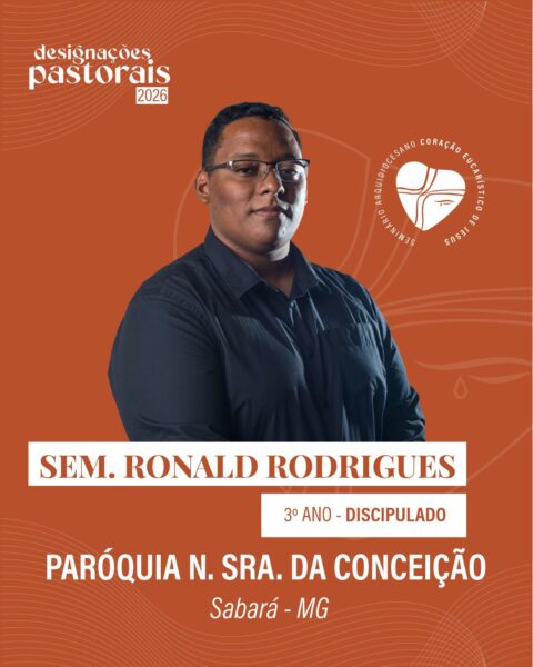 O Seminário Arquidiocesano Coração Eucarístico de Jesus publicou na tarde desta terça-feira (03) as designações pastorais para o ano de 2026 dos seminaristas do 1º e 2º ano do Discipulado (Filosofia). Os envios integram o processo formativo e possibilitam aos seminaristas a vivência concreta do serviço à Igreja, em diálogo com as comunidades e realidades pastorais onde atuarão.