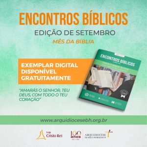 Em comunhão com toda a Igreja no Brasil, o Vicariato Episcopal para Ação Pastoral da Arquidiocese de Belo Horizonte, por meio da Comissão Arquidiocesana de Publicações, disponibiliza o subsídio com os Encontros Bíblicos para o mês de setembro, em que celebramos o Mês da Bíblia. O roteiro está sendo disponibilizado pela internet, de modo gratuito.