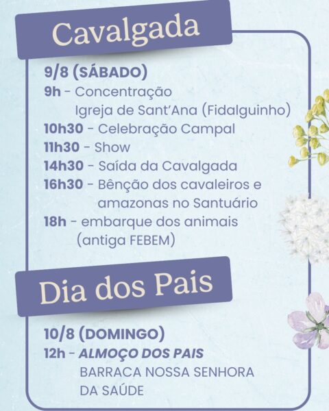 Acompanhe, a seguir, a programação completa e participe com sua família e amigos desta celebração da fé!?
