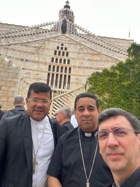 Os bispos auxiliares dom Júlio César Moreira, dom José Otacio e dom Edmar José peregrinaram à Terra Santa, no início deste tempo da Páscoa, em busca de viver importante exercício espiritual: passar pelos caminhos que, um dia, foram trilhados por Jesus e seus discípulos. Os bispos auxiliares, em oração e espírito fraterno, estiveram em lugares sagrados, aproximando-se, ainda mais, da cultura e do contexto social em que viveram Jesus e os seus apóstolos. Na Terra Santa, os bispos rezaram pelas comunidades de fé da Arquidiocese de Horizonte.