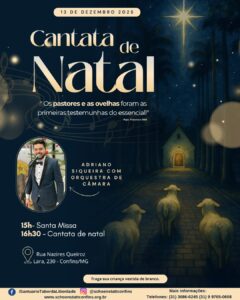 No sábado, dia 13 de dezembro, o Santuário Tabor da Liberdade, em Confins, será inundado de luz e alegria com a Cantata de Natal. A apresentação será conduzida pelo músico Adriano Siqueira e Orquestra de Câmara.