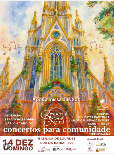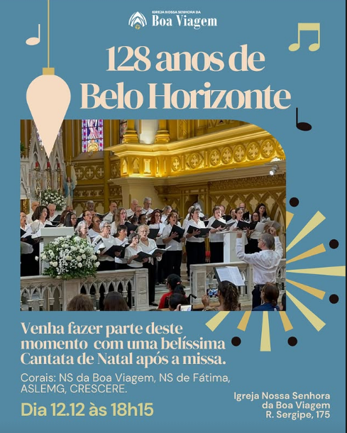 As comunidades de fé da Arquidiocese de Belo Horizonte celebram com alegria o nascimento de Cristo com cantatas e apresentações musicais, coro e corais. Venha com sua família e participe desse momento único.