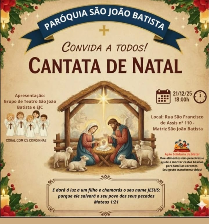 16/12 (terça-feira): Cantata de Natal Coral Sonos Fidei, às 20h.