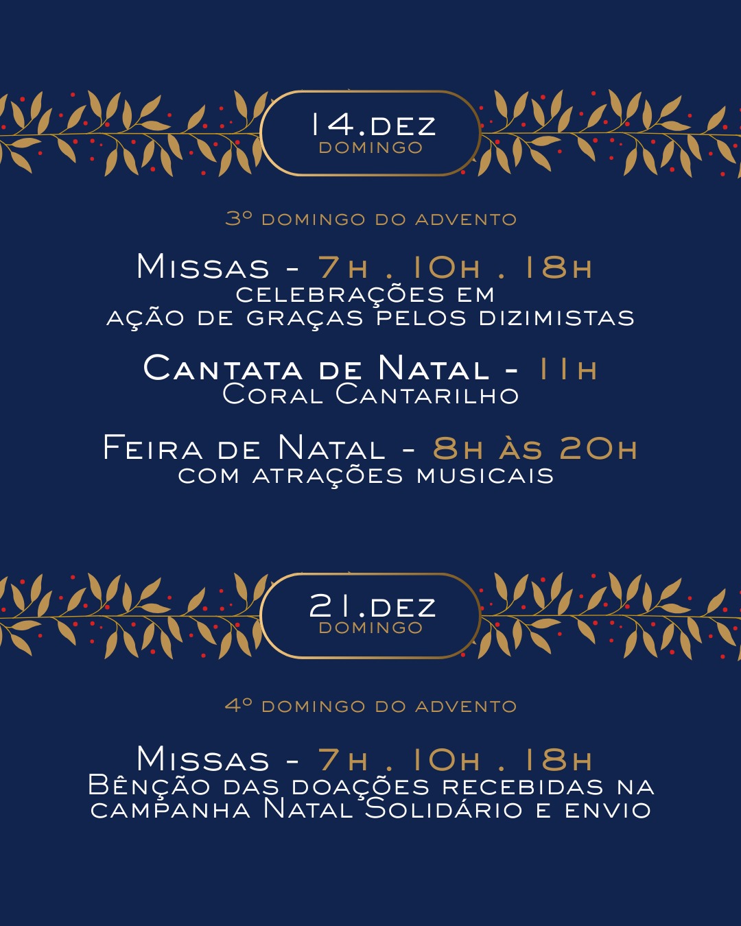 Veja a programação nos Santuários e Paróquias da nossa Arquidiocese.
