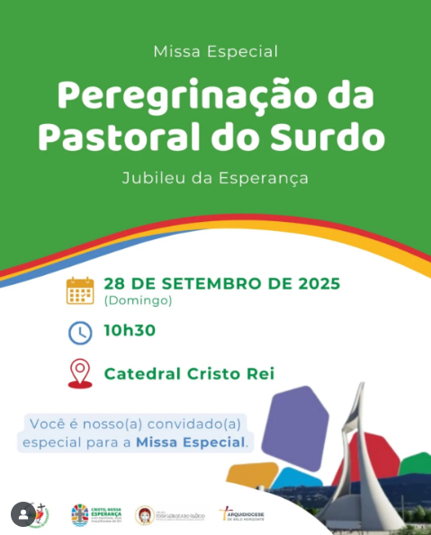 É com alegria que a Catedral Cristo Rei acolhe a Peregrinação da Pastoral do Surdo, dia 28 de setembro, domingo. Fiéis e peregrinos são convidados para a Missa especial, às 10h30, que contará com a tradução de intérprete da Língua Brasileira de Sinais (Libras) e também celebrará o Dia Nacional do Surdo – comemorado no dia 26.