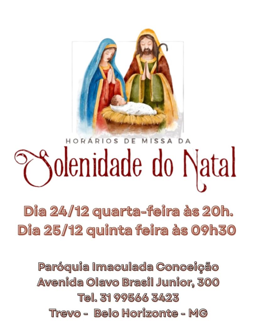 Dia 25 dez (Quinta): Missa –09:00– NOSSA SENHORA APARECIDA