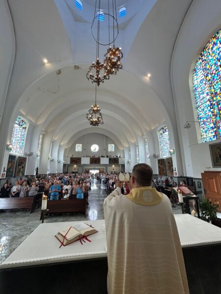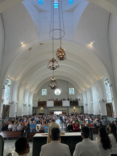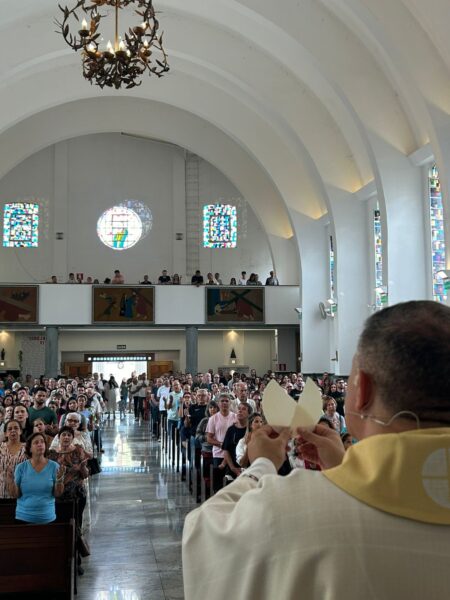 Fiéis participam com alegria e fé da Celebração Eucarística que marca o início do Ano Jubilar da Esperança, na Basílica Santo Cura D’Ars, no domingo, dia 2 de fevereiro.