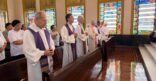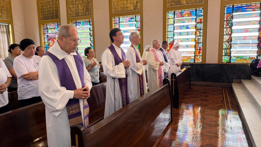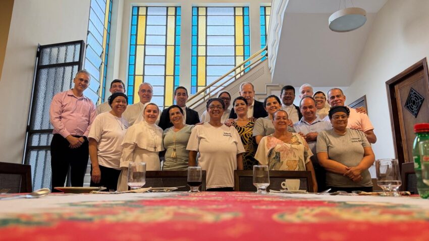 Colaboradores do Palácio Cristo Rei, na Praça da Liberdade, em Belo Horizonte, participaram de um momento especial de oração com o arcebispo de Belo Horizonte, dom Walmor Oliveira de Azevedo, e os bispos auxiliares da Arquidiocese de Belo Horizonte: dom Joel Maria dos Santos, dom José Otacio Oliveira Guedes, dom Júlio César Gomes Moreira, dom Edmar José da Silva e dom Nivaldo dos Santos Ferreira. Também participou do encontro o monsenhor Nédio Lacerda, vigário geral da Arquidiocese de Belo Horizonte.