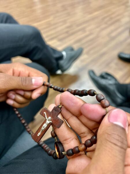 Cada mistério do terço foi confiado a uma etapa formativa do seminário, simbolizando a comunhão e a corresponsabilidade de todos na obra evangelizadora: