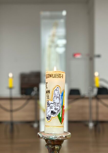 O momento mariano também contou com a presença da chama missionária peregrina, sinal de ação de graças pelos 40 anos do COMISE (Conselho Missionário de Seminaristas) no Brasil. Essa chama, vinda de Teresina – cidade onde tudo começou –, percorre dioceses do Regional Leste 2 da CNBB e, neste dia, chegou ao nosso seminário, iluminando a oração e reacendendo o ardor missionário em cada participante.