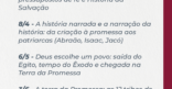 - 6/5 – Deus escolhe um povo: saída do Egito, tempo do Êxodo e chegada à Terra da Promessa;