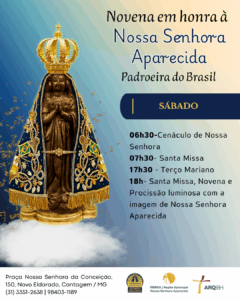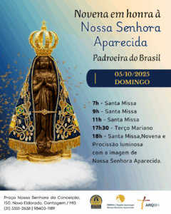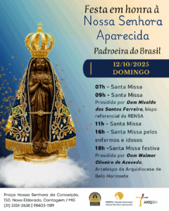 O Santuário Arquidiocesano Nossa Senhora da Conceição Aparecida, em Contagem, convida fiéis e devotos para Novena e Festa de sua Padroeira e do Brasil, de 3 a 12 de outubro.