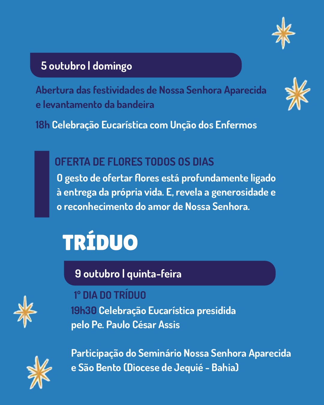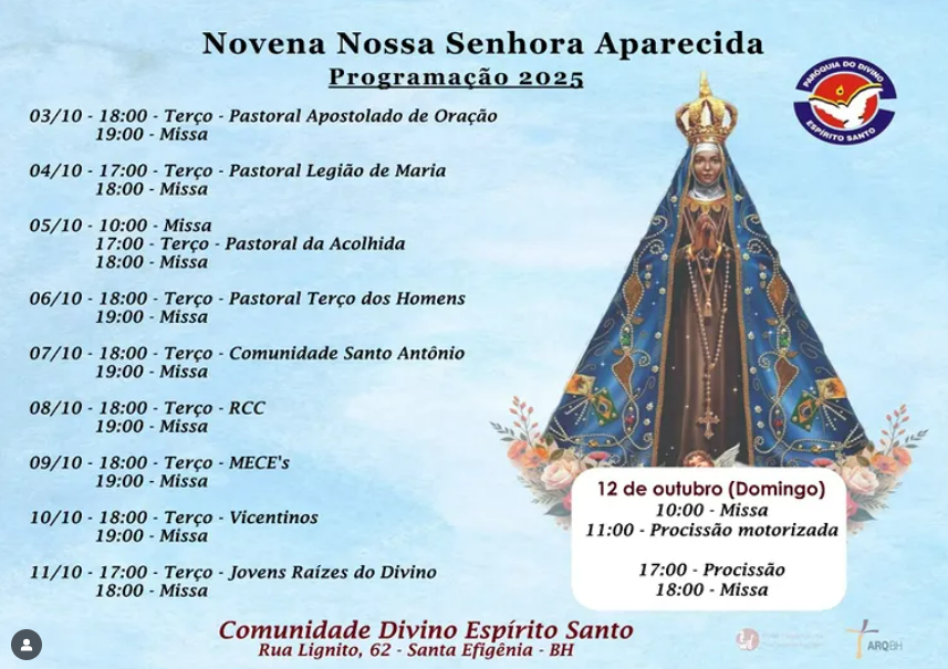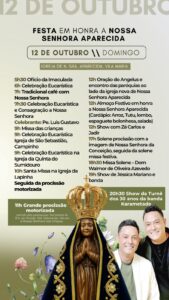 - 03 a 11/10 – Novena em honra a Nossa Senhora Aparecida