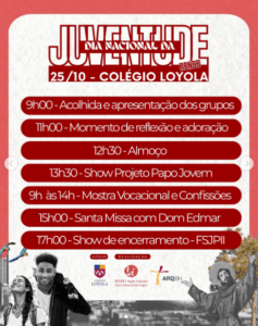 No dia 19 de outubro, a Igreja celebrou o Dia Nacional da Juventude – DNJ, convidando os jovens a refletirem sobre a espiritualidade da Criação, inspirado pelo tema “Juventude e Ecologia Integral”.