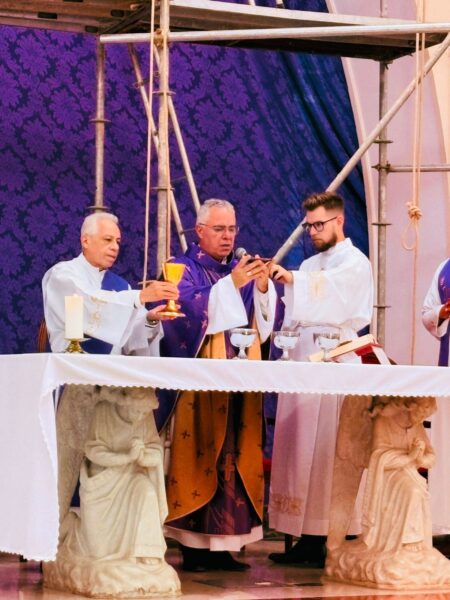 O bispo auxiliar dom Nivaldo dos Santos Ferreira presidiu Missa neste sábado, 14 de março, na conclusão do retiro que reuniu agentes da Pastoral Hospitalar da Arquidiocese de Belo Horizonte. A Missa, no Santuário Arquidiocesano da Saúde e da Paz, fortaleceu ainda mais os agentes da Pastoral na missão de amparar espiritualmente os enfermos nos leitos hospitalares.