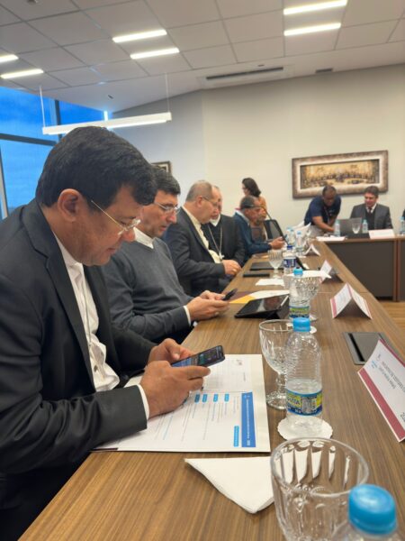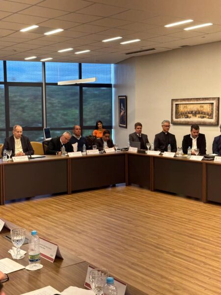 Na manhã desta sexta-feira, 16 de maio, o arcebispo dom Walmor presidiu reunião com gestores do Colégio Santa Maria Minas, da PUC Minas e da Sociedade Mineira de Cultura, com a presença dos bispos auxiliares e sacerdotes. O encontro, realizado na Catedral Cristo Rei- Igreja Mãe da Arquidiocese de Belo Horizonte, foi oportunidade para importantes partilhas e para o planejamento de ações das instituições arquidiocesanas no horizonte do ano de 2025.