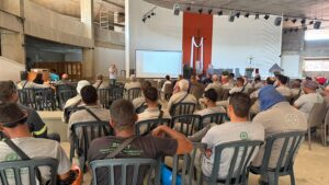 As equipes que se dedicam à obra da Catedral Cristo Rei e os colaboradores das instituições da Arquidiocese de Belo Horizonte participaram de um momento formativo sobre sustentabilidade, nesta quinta-feira, 5 de junho. O técnico Thiago Moreira dedicou-se ao tema “Tratamento de resíduos e a importância da destinação adequada”. A meta é que os trabalhos de edificação da Catedral Cristo Rei e as muitas atividades acolhidas na Igreja-Mãe da Arquidiocese de Belo Horizonte permaneçam sempre alinhadas com os parâmetros de sustentabilidade.