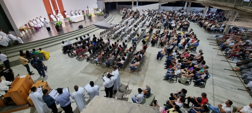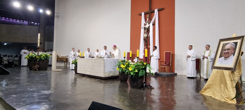 Dois mil peregrinos se uniram ao arcebispo dom Walmor Oliveira de Azevedo para a Missa com orações pelo descanso eterno da alma do Papa Francisco, celebrada nesta segunda-feira, 21 de abril, na Catedral Cristo Rei. Muitos padres, diáconos, religiosas e religiosos, fiéis de comunidades paroquiais da Arquidiocese de Belo Horizonte deixaram a Catedral Cristo Rei repleta na despedida do Papa Francisco – dois mil peregrinos reunidos em oração. “É a Igreja na amada Arquidiocese de Belo Horizonte unida à Igreja de todo o mundo, para poder orar, pedindo o descanso eterno do Papa Francisco, servo bom e fiel, que entra na alegria do Senhor”, explica dom Walmor Oliveira de Azevedo, em homilia durante a Missa.