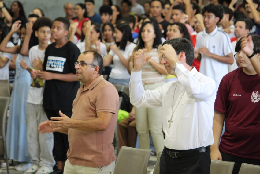 A Catedral Cristo Rei acolheu com grande alegria e entusiasmo, nesse sábado, 22 de março, cerca de 700 crismandos das paróquias da Região Episcopal Nossa Senhora da Conceição (Rensc). Os adolescentes estão se preparando para receber o sacramento da Crisma no primeiro semestre de 2025. O encontro foi conduzido por dom Júlio César, que refletiu sobre a importância da Crisma e da caminhada dos jovens, sobre o fortalecimento da vida cristã. Dom Júlio também refletiu com os jovens sobre a importância de dar continuidade a uma participação ativa e comprometida na Igreja.