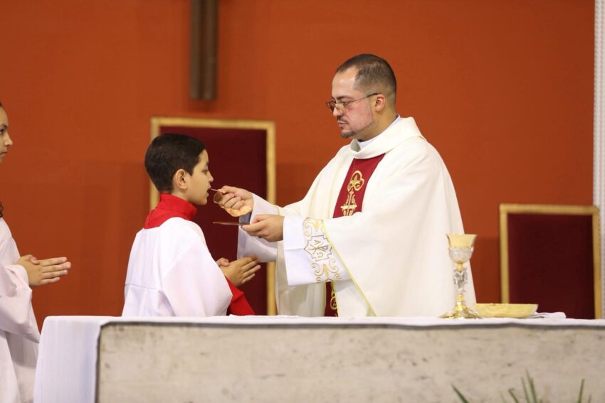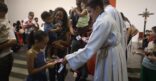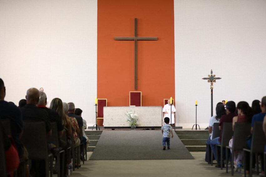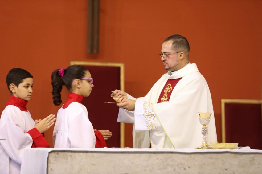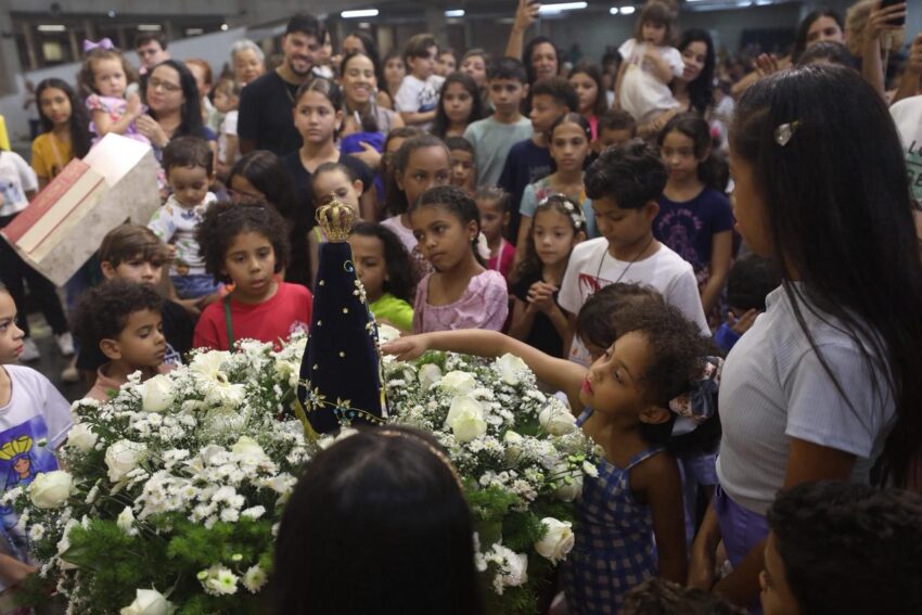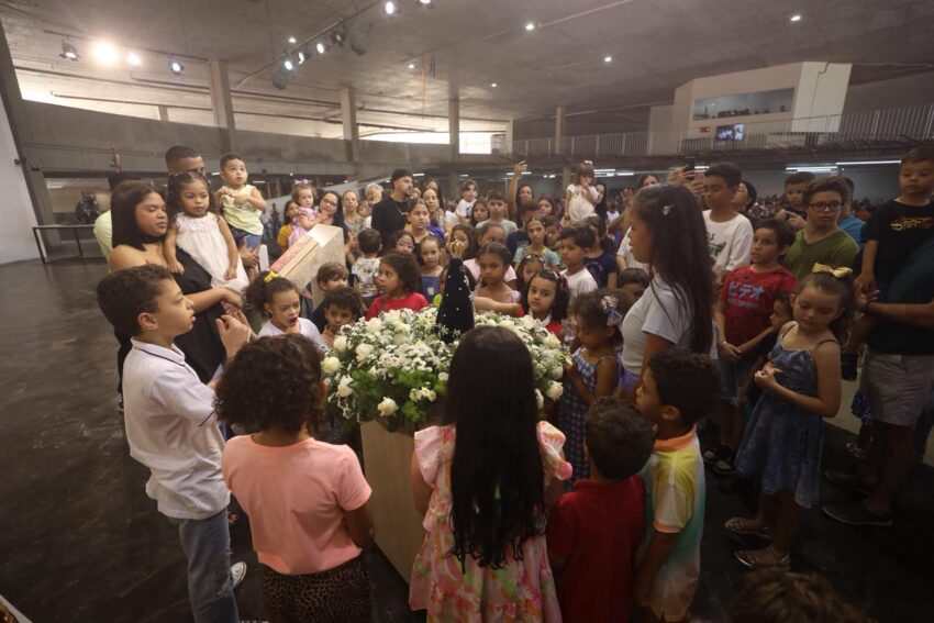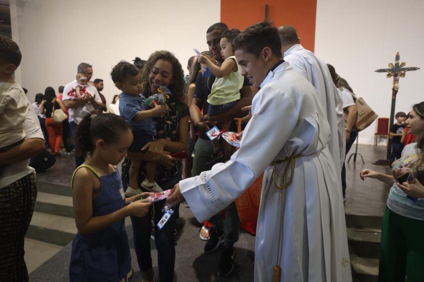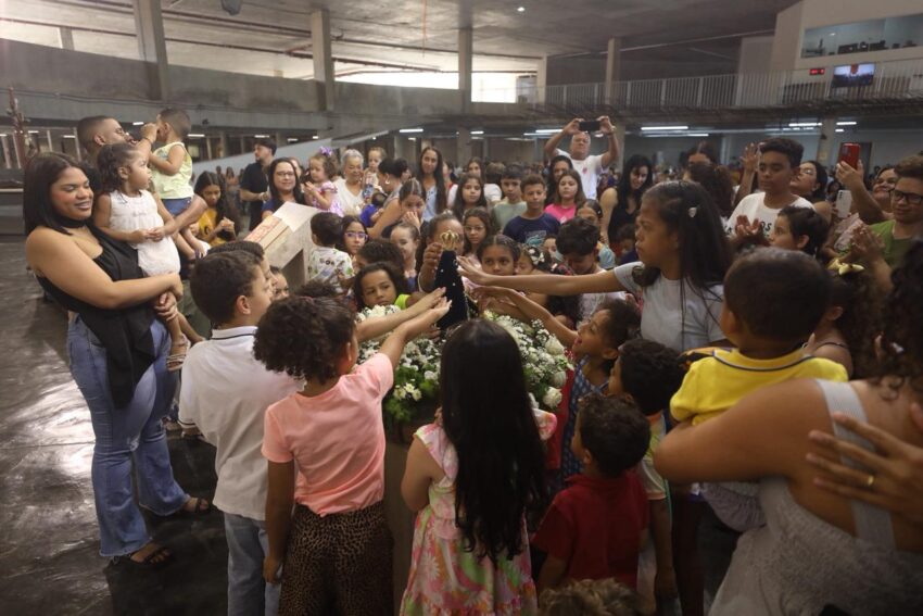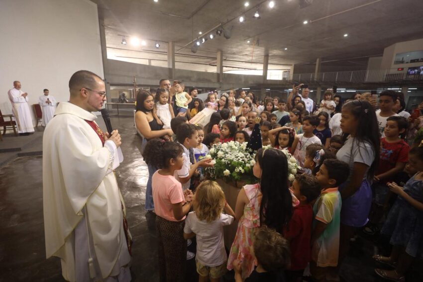 Na Missa deste domingo na Catedral Cristo Rei, Festa de Nossa Senhora Aparecida, os pequeninos e pequeninas foram homenageados pelo Dia das Crianças. Além de palmas da assembleia de fiéis, as crianças ganharam doces.