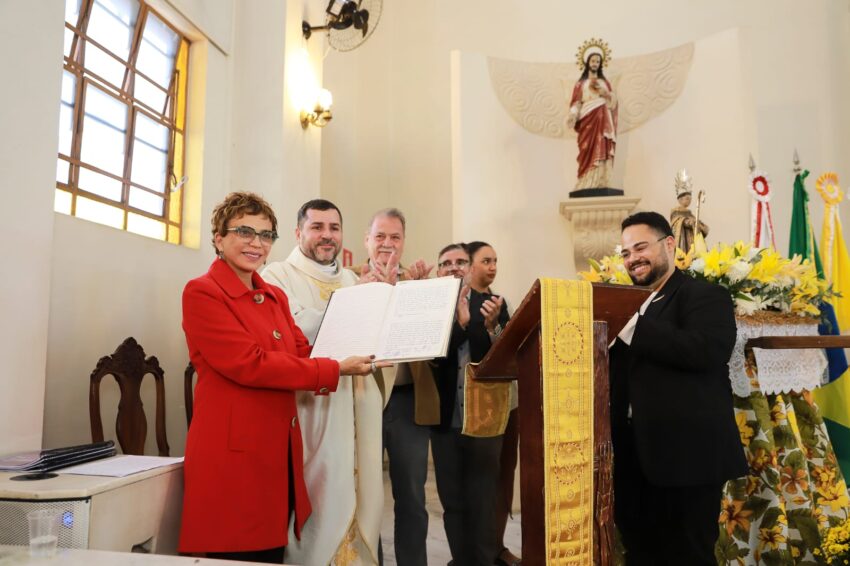 A cerimônia de tombamento da imagem de São Gonçalo do Amarante ocorreu após Missa Solene, neste mês de julho, e contou com presença da comunidade de fé, do padre Márcio Ribeiro de Souza, pároco da Paróquia São Gonçalo, e representantes do poder público.