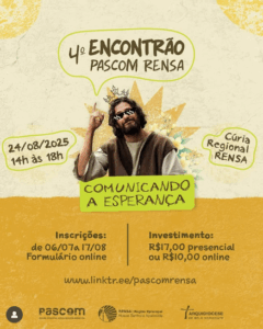 A Região Episcopal Nossa Senhora Aparecida (Rensa) convida os seus agentes das Pastorais de Comunicação para o 4º Encontro Regional da Pascom, no dia 24 de agosto, domingo, das 14h às 18h, na Cúria Regional, em Contagem. Os participantes poderão optar pela inscrição na modalidade presencial ou online.