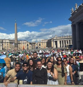 Jovens da Arquidiocese de Belo Horizonte estão em Roma partilhando desse grande encontro de fé e esperança. Na tarde dessa terça-feira, 29 de julho, os peregrinos lotaram a Praça São Pedro para a Santa Missa de boas-vindas do Jubileu, presidida por dom Rino Fisichella. Entre os milhares presentes na celebração, Luan Souza, juntamente com jovens da Arquidiocese de Belo Horizonte, celebram o momento de fé com a juventude de todo o mundo. “Estamos muito felizes, conseguimos um lugar na primeira fileira, a apenas 20 metros do altar, para assistir à Missa de abertura”, conta Luan entusiasmado, sublinhando a emoção e gratidão por estar vivenciando em Roma momento tão especial: “É muito emocionante e revigorante ver que a nossa fé está viva no mundo todo, e agora está junta e reunida para celebrar esse momento tão bonito.”