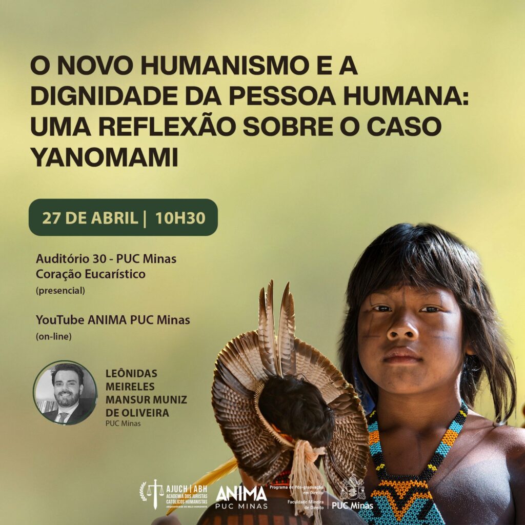 O Anima PUC Minas – Sistema Avançado de Formação, Identidade e Missão, a Academia dos Juristas Católicos Humanistas e a Faculdade Mineira de Direito realizam a live “O novo Humanismo e a dignidade da Pessoa Humana: uma reflexão sobre o caso Yanomami”, no próximo dia 27 de abril, às 10h30, no Auditório 30 – Campus Coração Eucarístico. O momento formativo será conduzido pelo doutor e professor de Direito da PUC Minas Leônidas Meireles Mansur Muniz de Oliveira.