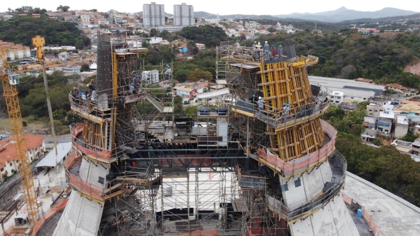 Os Pórticos da Justiça e da Verdade que integram o conjunto arquitetônico da Catedral Cristo Rei recebem novas concretagens neste mês de agosto: a primeira, no dia 5, a segunda, no dia 12, e a terceira, no dia 29 de agosto. Serão utilizados 74 metros cúbicos de concreto, ampliando a grande escultura formada pelos dois pórticos, que alcançara mais de 40 metros de altura. Quando estiver concluída, essa escultura terá 100 metros de altura (o que corresponde ao tamanho de um prédio com 38 andares). Os Pórticos da Justiça e da Verdade são ainda extensões das duas paredes do templo da Catedral Cristo Rei, compondo uma conexão da Igreja-Mãe da Arquidiocese de Belo Horizonte rumo ao céu.