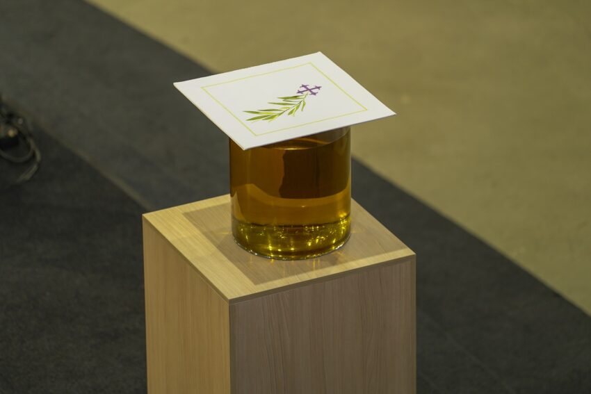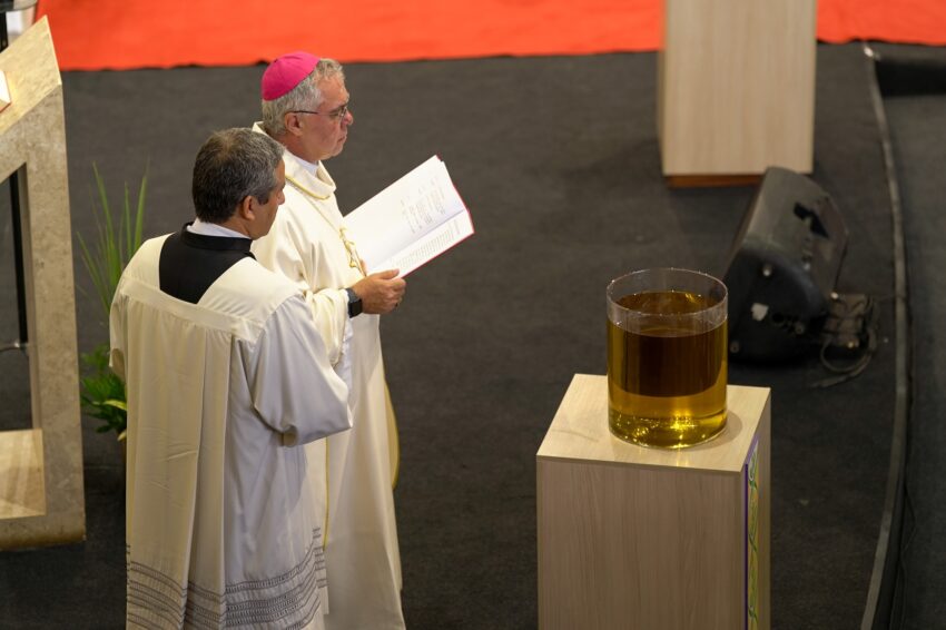 Também foram abençoados cerca de 80 litros dos santos óleos, que serão partilhados com todas as paróquias da Arquidiocese presentes nos 28 municípios da região metropolitana e da capital mineira. Os óleos serão utilizados nos sacramentos do Batismo, Crisma e Unção dos Enfermos.