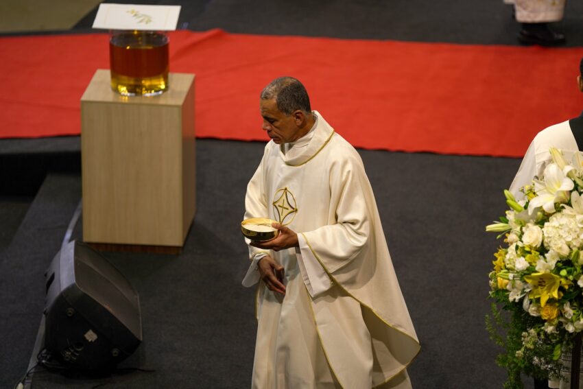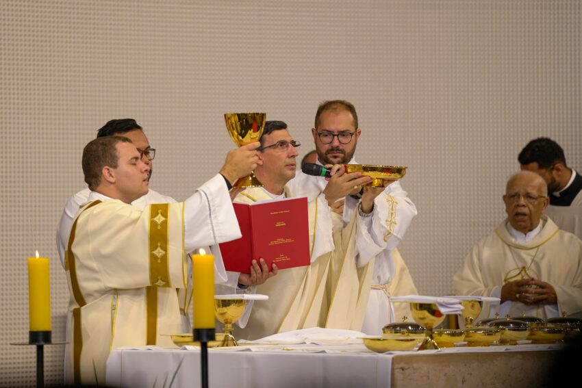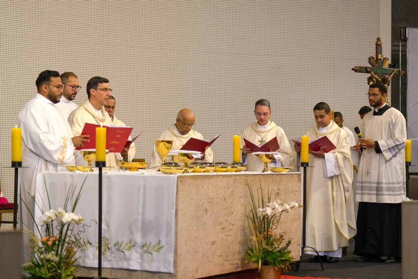 Durante a celebração da Missa da Unidade, os padres da Arquidiocese de Belo Horizonte renovaram suas promessas sacerdotais diante da assembleia, reafirmando o compromisso de servir o povo de Deus com fidelidade e espírito missionário.
