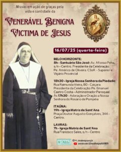 Amigos e devotos da Venerável Irmã Benigna convidam para Missas em Ação de Graças pela sua vida e santidade, neste mês de julho.