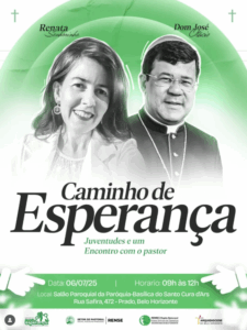 Jovens das comunidades de fé da Região Episcopal Nossa Senhora da Esperança (Rense) são especiais convidados para o Momento de escuta e espiritualidade “Caminho de Esperança: Juventudes em encontro com o Pastor”. O encontro será neste domingo, 6 de julho, das 9h às 12h, no Salão Paroquial da Paróquia Basílica do Santo Cura d’Ars.